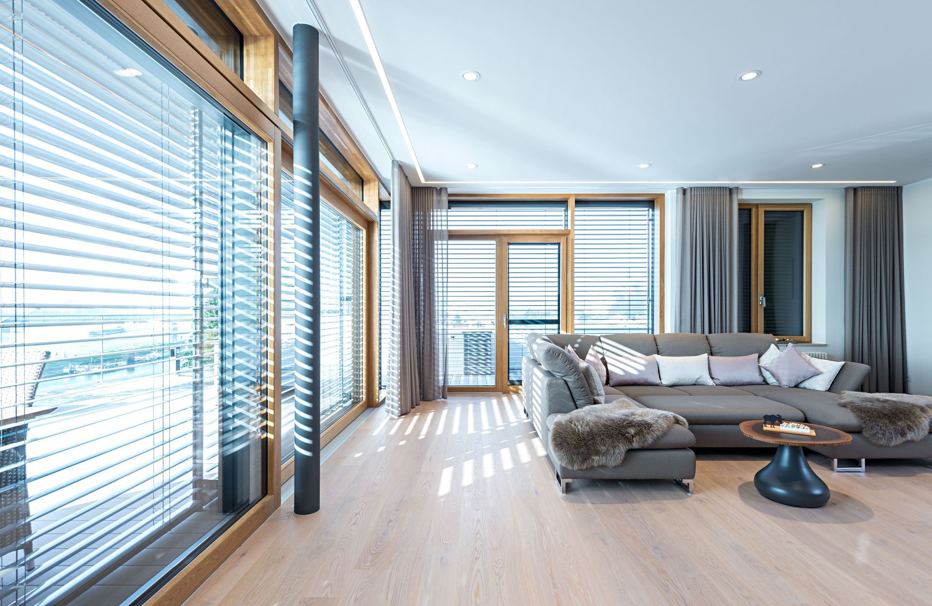Unsere Alu-Raffstoren sind stets mit mindestens 60 mm breiten Lamellen ausgestattet. Warum? Weil außen liegender Sonnenschutz nur mit breiten Lamellen wirklich effektiv ist. Diese bieten nicht nur eine hervorragende Stabilität, sondern auch eine besonders lange Lebensdauer. Die Raffstore-Lösungen bieten Ihnen eine Vielzahl an Funktionsmöglichkeiten und Ausstattungsoptionen, die individuell an Ihre Wünsche und Bedürfnisse angepasst werden können.